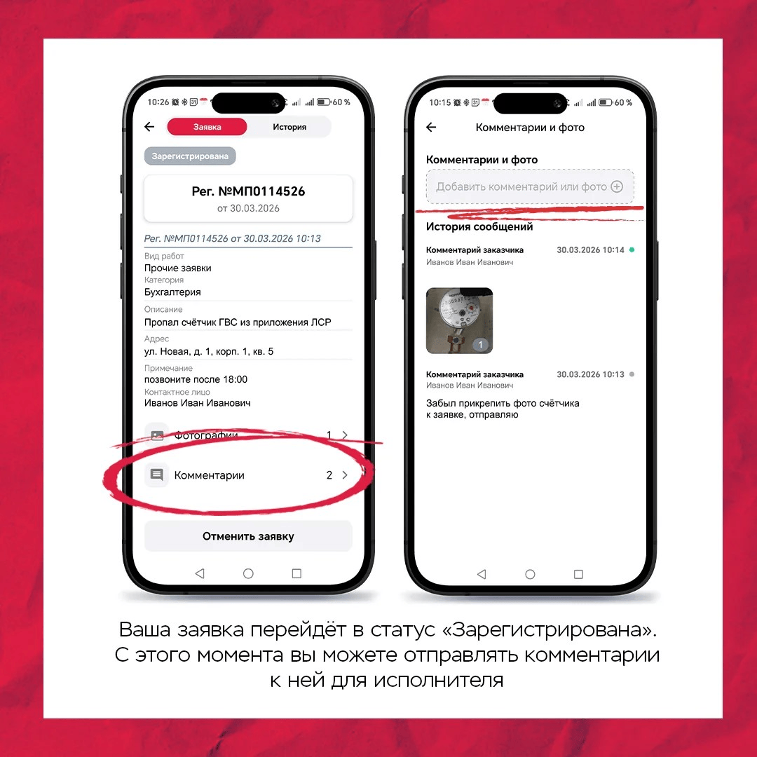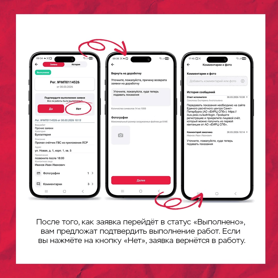 Новая версия мобильного приложения «ЛСР» делает взаимодействие между жителями и УК удобнее — теперь вы можете отправлять комментарии и получать ответы от исполнителей заявок, а также подтверждать выполнение и оставлять оценки.