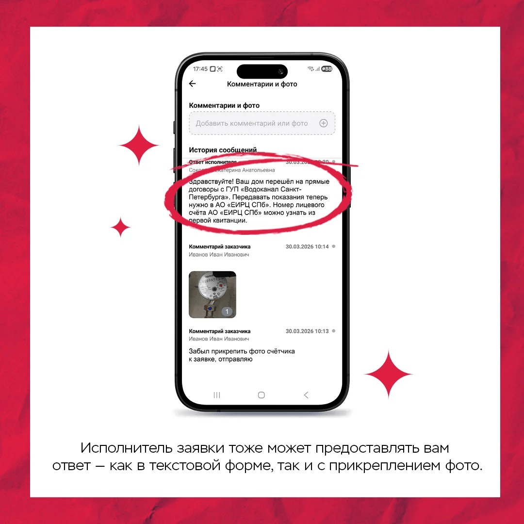 3. Исполнитель заявки тоже может предоставлять вам ответ — как в текстовой форме, так и с прикреплением фото.