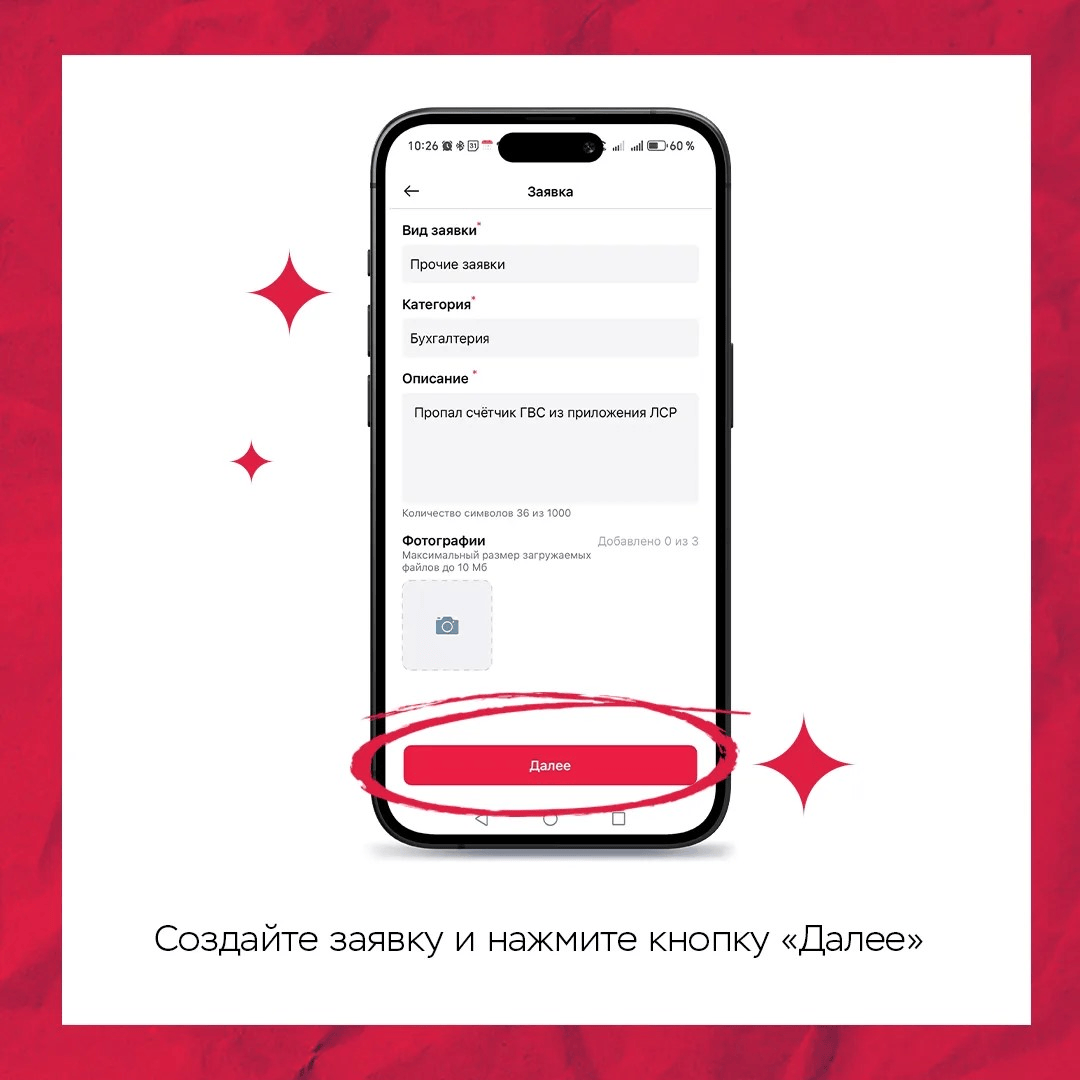 1. Создайте заявку и нажмите кнопку «Далее».